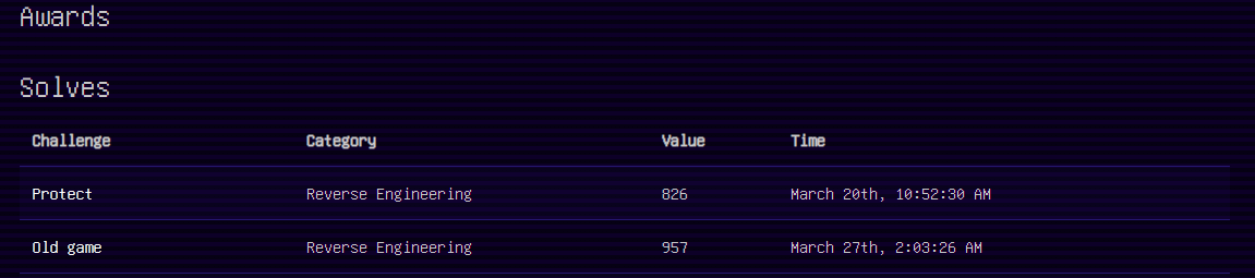 On the last day, the Reversing challenges were a bit better—at least they weren’t “guessy”—but they were fairly easy. After clearing the Reversing category, I found that my teammates had already cleared all the Forensics challenges too.
