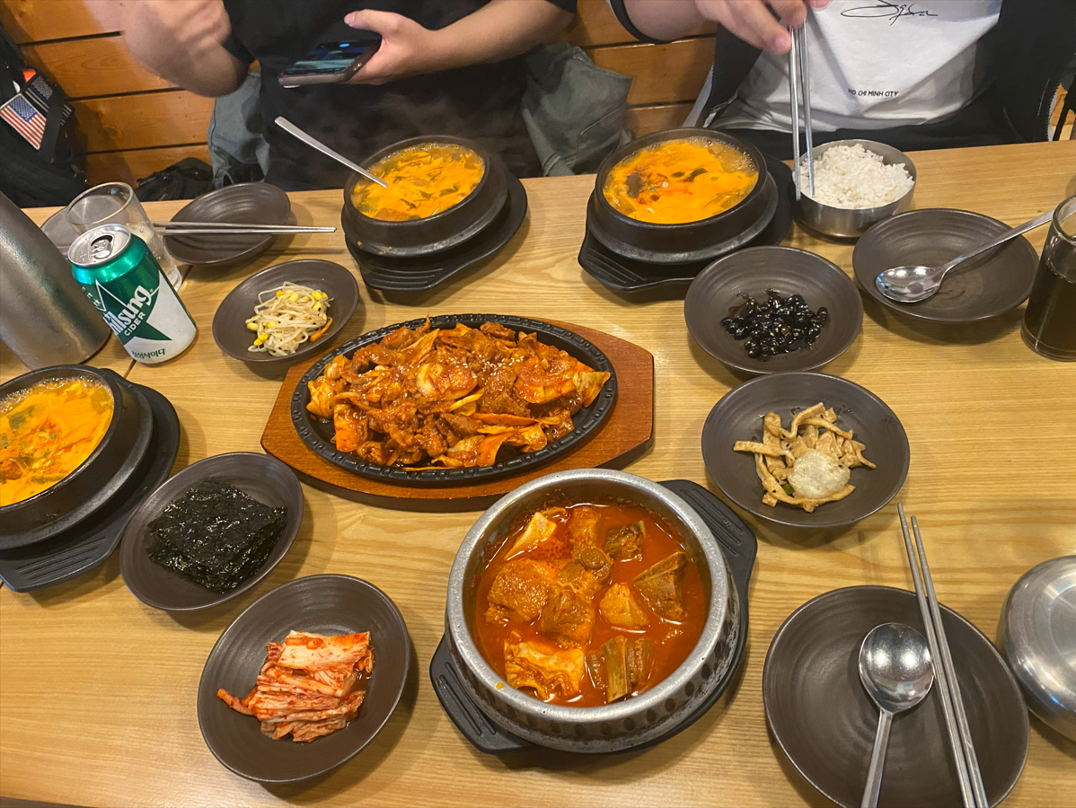 South Korea has so much amazing food to try 😋😋😋. We went straight to a local restaurant while waiting for our hotel check‑in, and it was so yummy :D. The dishes were flavorful and comforting after the flight, and it felt like the perfect way to start the trip.