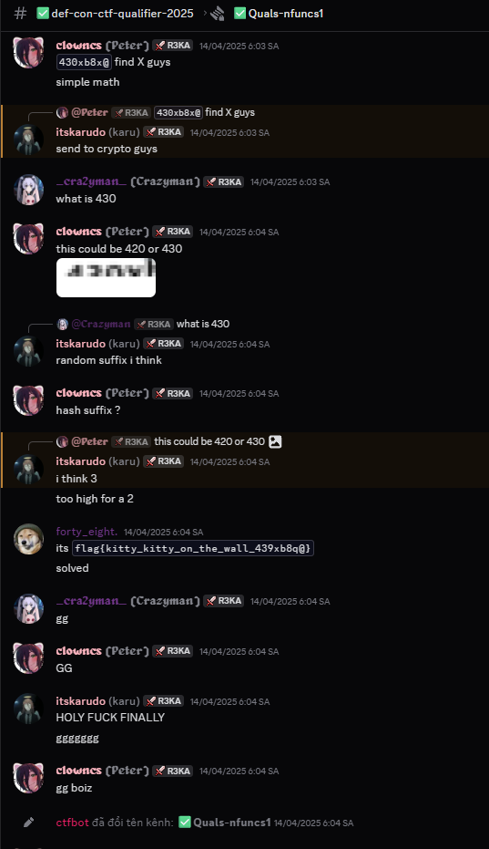Being one of the people to crack this challenge felt incredible. Not just because we got points for the team, but because it represented a level of problem-solving I’d been striving toward. Thanks @karu for helping me working on this challenge, you can read my detailed writeup here: https://clowncs.github.io/blog/2025/defcon/