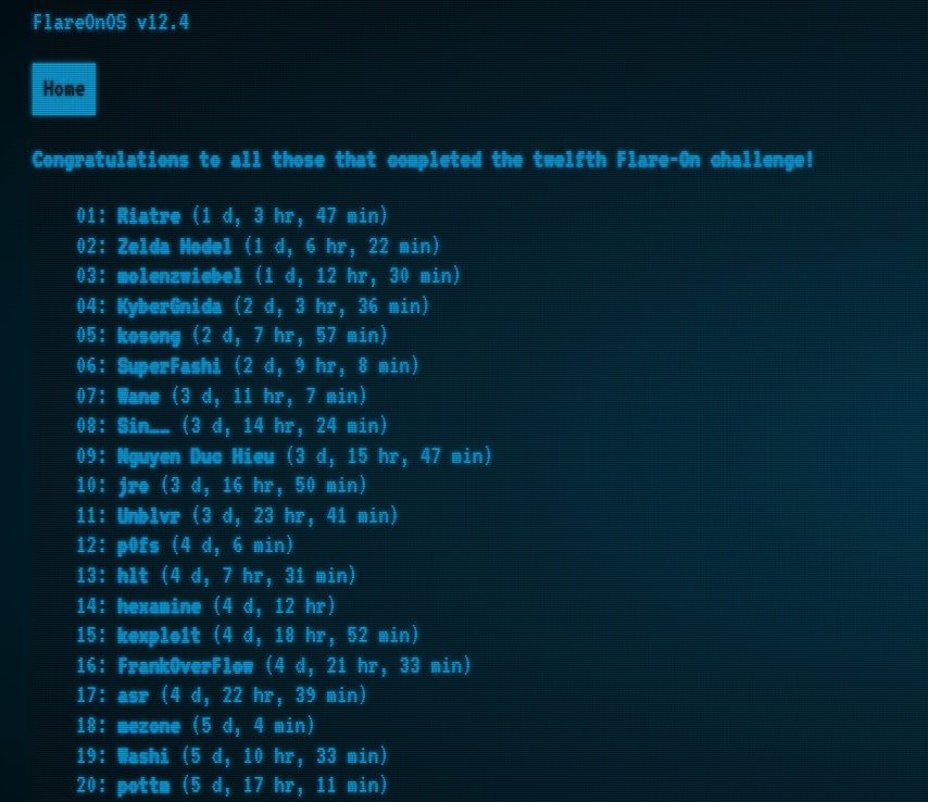 In the last week of September, the biggest event for reverse engineers, Flare-On 12, took place. Having participated last year, I was determined to take on the challenge again.