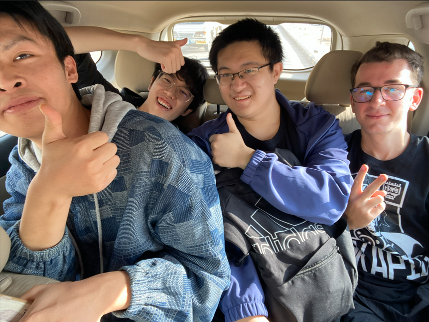 I played with r3kapig alongside @crazyman, @rec, @BitsFriends, and @chleynx. On the first day, we struggled to find an XL car that could fit all five of us. We ended up having to book a standard 4-seat car, and… well, this happened: