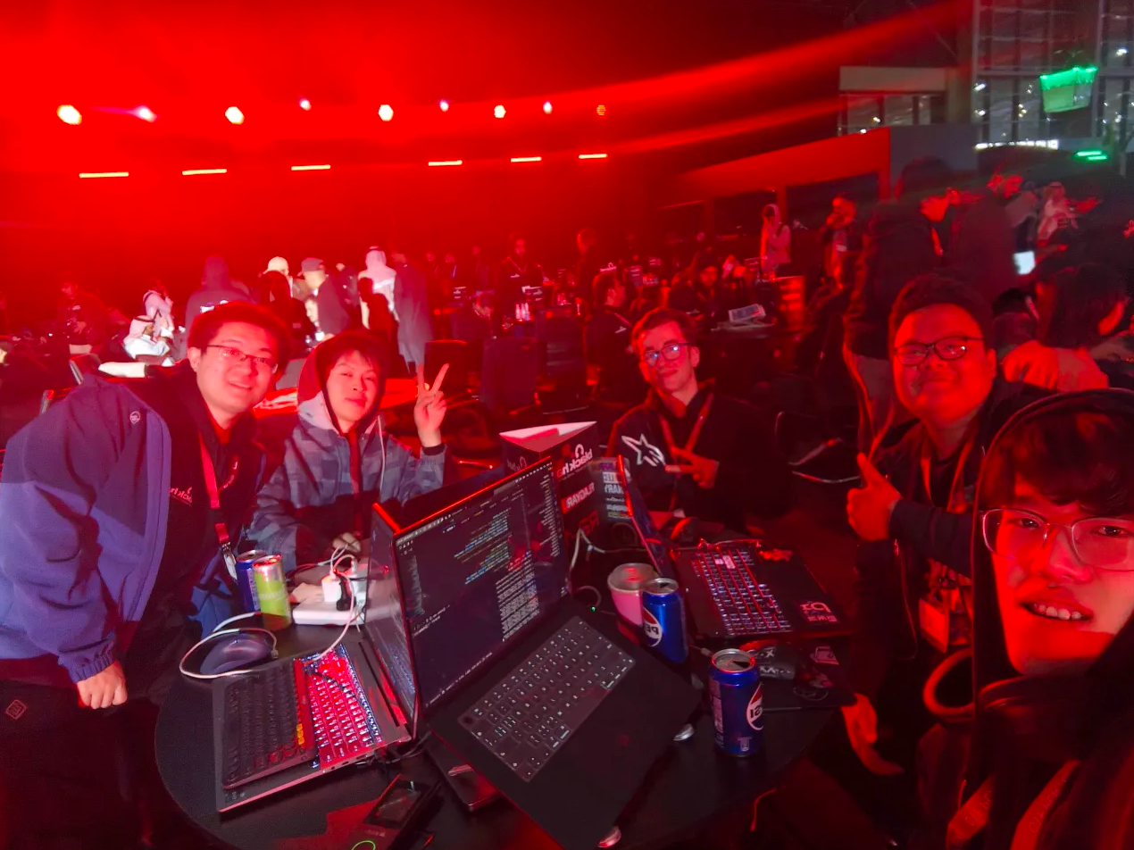 On November 11th, the venue opened in the afternoon for teams to set up their equipment and collect their merch. Around lunchtime, I ran into @JoshL—another “rev god” and the captain of @idek. I invited him to join our group for lunch, and we ended up grabbing ramen together. We had a great time discussing CTFs, our career paths, and how we first got started in the scene. Meeting him in person was a fantastic experience.