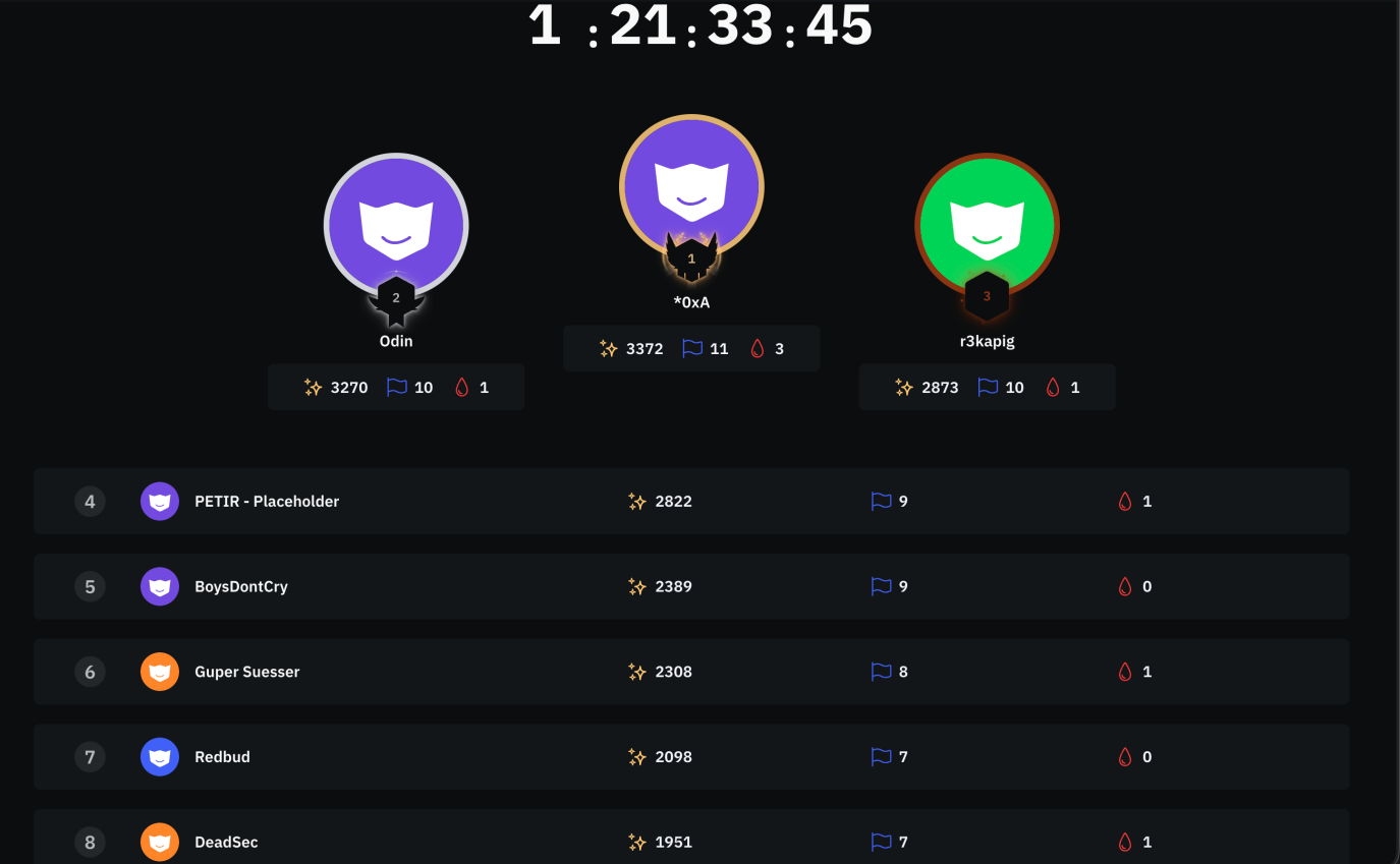 Overall, I had an unforgettable experience playing this CTF with my team. The competition was tough and the hours were long, but the teamwork made it enjoyable. I really enjoyed it a lot, and I left feeling motivated to improve for the next event.